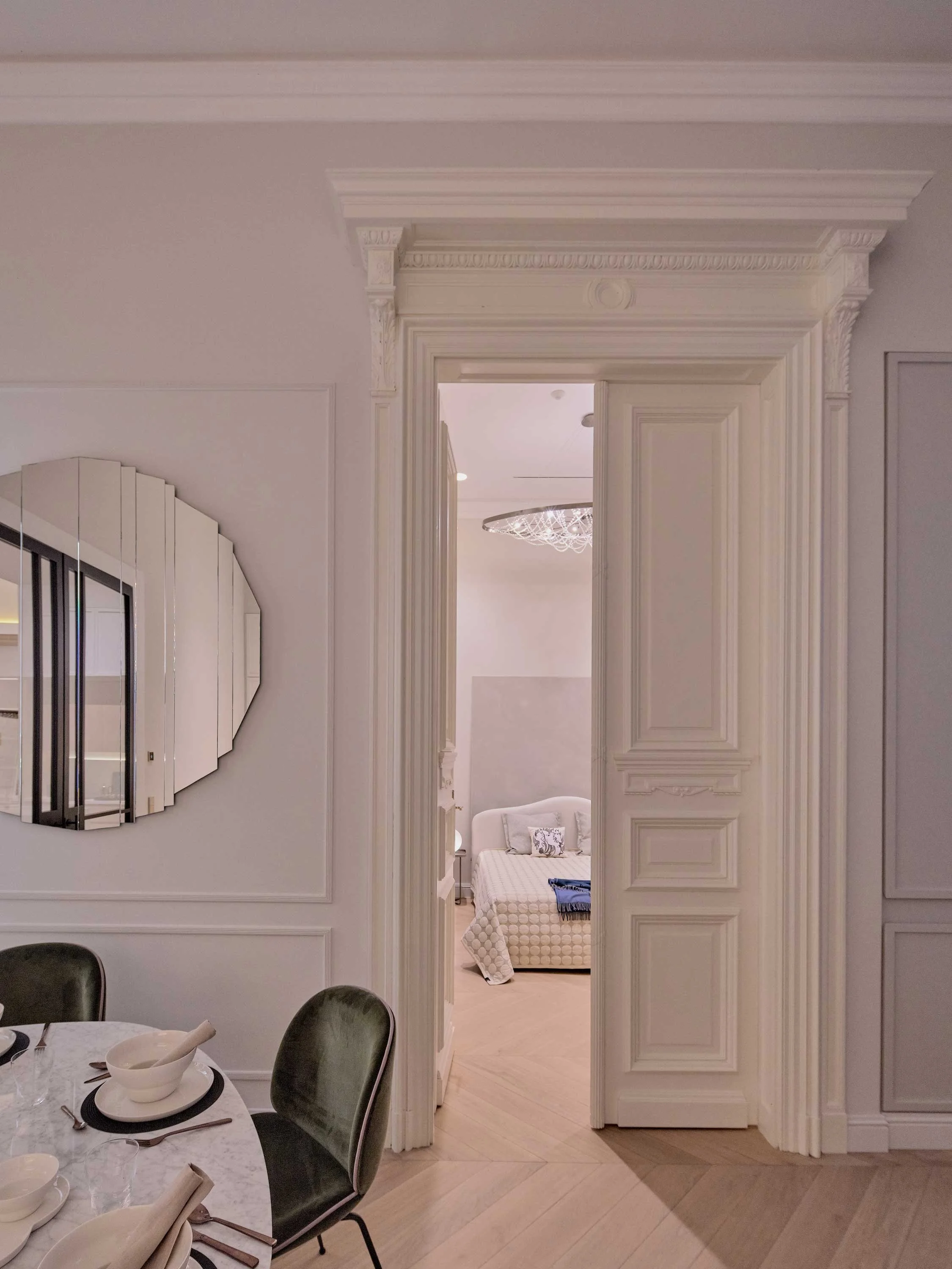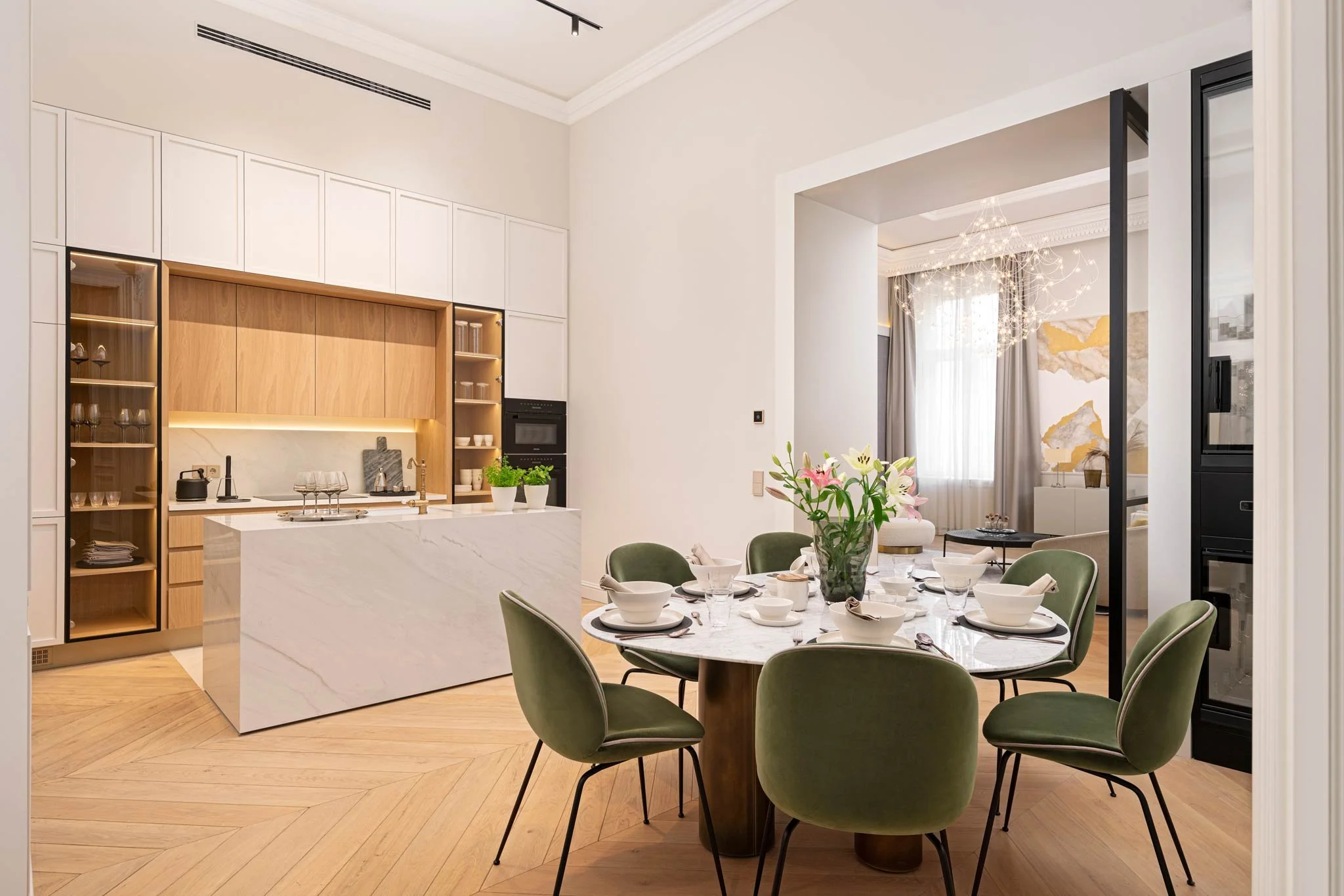 A47 Luxury Apartments, BudapestProduct: Select oakFormat: Design Panels, Chevron, HerringboneFinish: BespokeEnquireBack